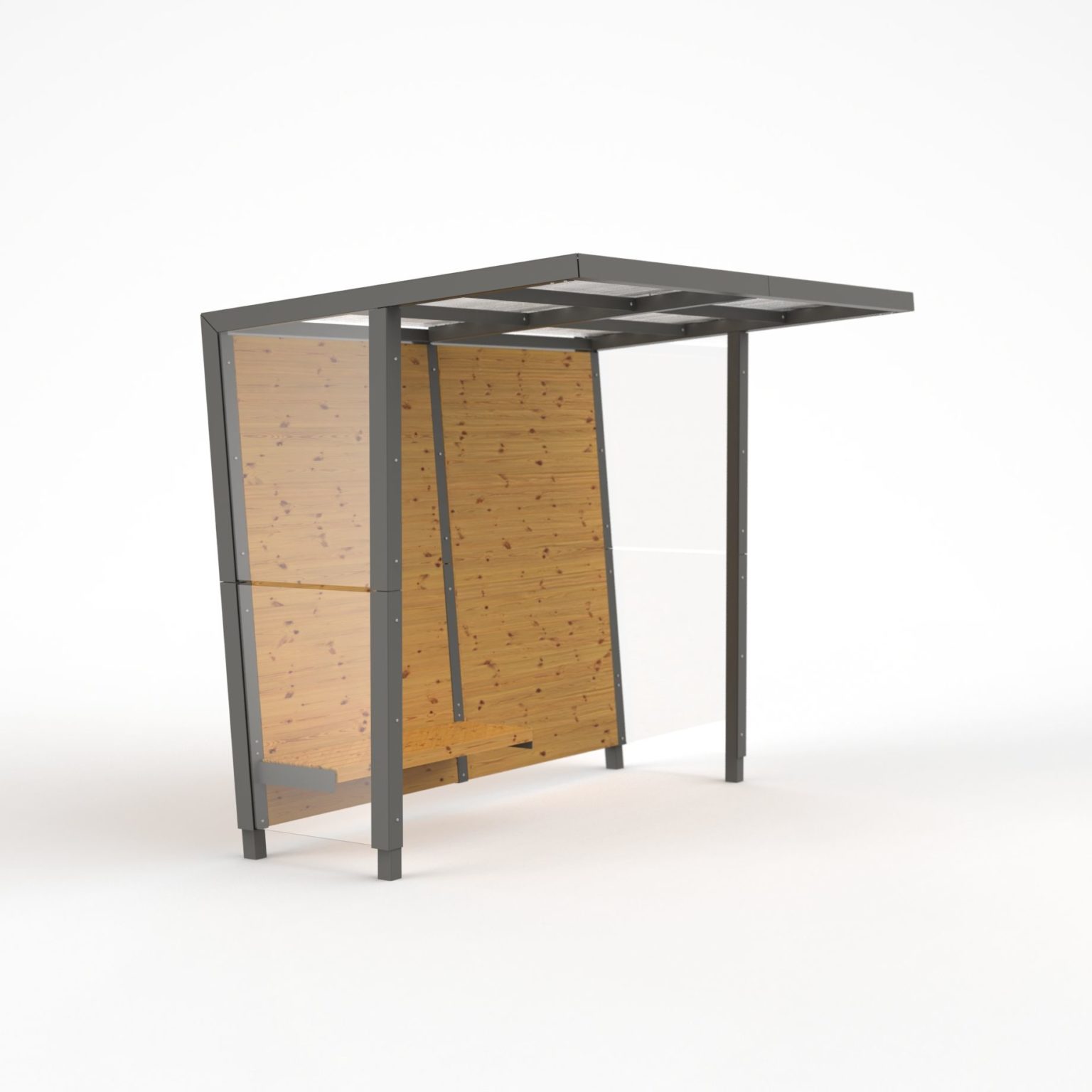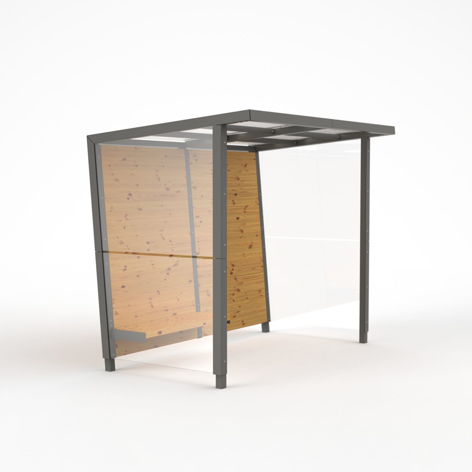 Výhodou přístřešku UHLYK je robustní jeklová konstrukce, která odolá velkému zatížení střechy. Musí mít minimálně zúžené bočnice, které jsou však o něco málo širší než lavička uvnitř přístřešku. Přístřešek UHLYK je více uzavřený a čekající jsou tak více chráněni před nepřízní počasí. Zadní plocha může být prosklená nebo dřevěná.